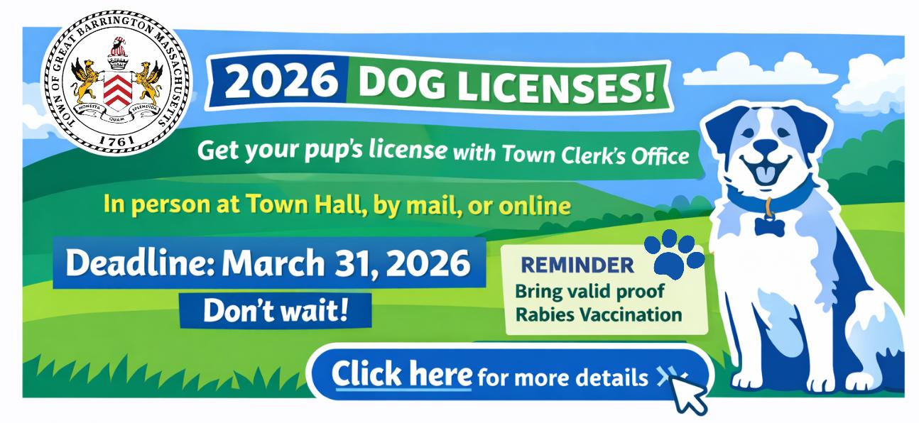 The Town of Great Barrington is reminding dog owners that 2026 dog license renewal season is officially underway, and the Town Clerk’s Office is ready to help make the process quick and easy.